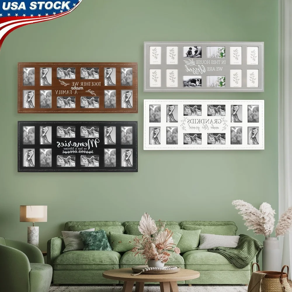 12 Opening Rustic Photo Frame Collage Wall Decor 4x6 Pictures Durable MDF Easy to Hang Family Gift
