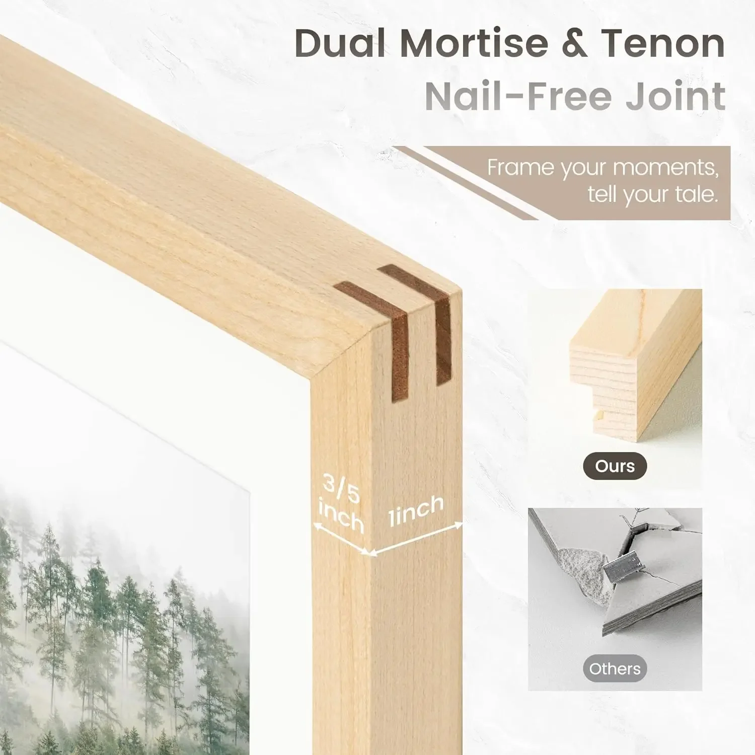 XMSJ-Sale16 x 20 Picture Frame Set of 3, USA-Sourced Natural Maple Wood Photo Collage with HD Tempered Glass, Modern Simpl